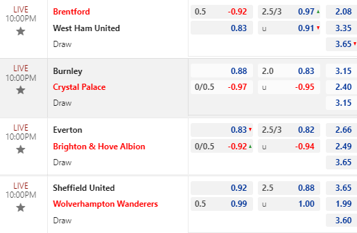 AEGoal chốt kèo bóng đá trực tiếp Ngoại hạng Anh loạt 22h00 ngày 04/11/2023 sau khi dựa trên tính toán, chuyển động về kèo châu Á.