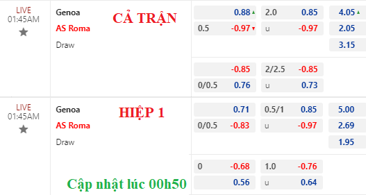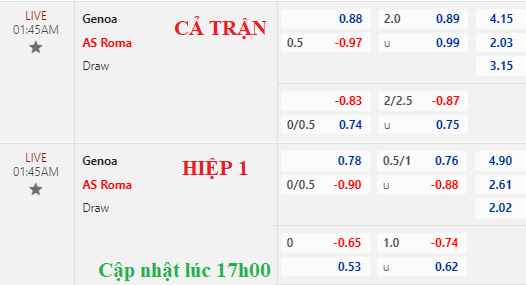 AEGoal chốt kèo bóng đá trực tiếp trận Genoa vs AS Roma diễn ra lúc 01h45 ngày 29/09/2023 trong khuôn khổ giải VĐQG Italia sau khi dựa trên tính toán, chuyển động về kèo châu Á và đội hình ra sân của 2 đội.