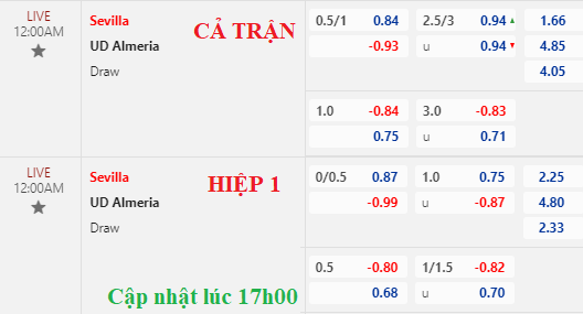 Chốt kèo trực tiếp trận Sevilla vs Almeria (00h00):