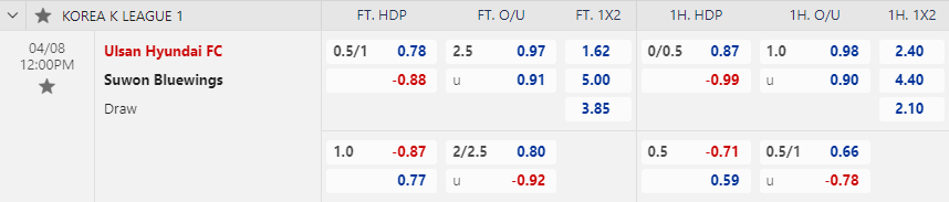 Chốt kèo: Ulsan Hyundai -1 cả trận