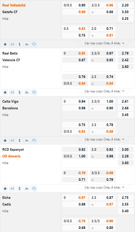 Celta Vigo vs Barcelona: Tỷ lệ trận đấu vẫn ở mức 0:0 nhưng điểm ăn của đội chủ nhà tăng đem lại dấu hiệu không tốt cho Celta Vigo. Đội chủ nhà cần phải thắng để tự quyết định số phần trong cuộc đua trụ hạng, và không có nhiều cơ hội nếu chỉ có 1 điểm. Đây là một lý do tốt để lựa chọn cửa tài. CHỐT: Tài 2 3/4 cả trận