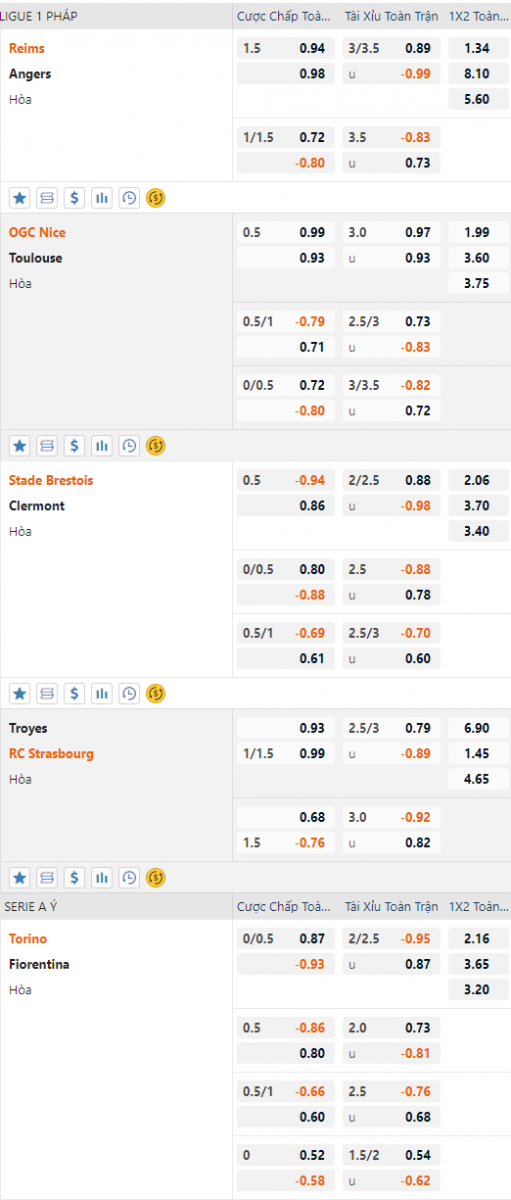 Reims vẫn duy trì mức chấp 1 1/2 như thời điểm chúng tôi cập nhật lần trước, điểm ăn cửa trên đã được điều chỉnh giảm như không nhiều. Bên phía tỷ lệ tài xỉu cũng có diễn biến tương tự khi điểm ăn của cửa tài được điều chỉnh giảm đôi chút. Có thể thấy mức chấp này là mức chấp rất cao của đội chủ nhà so với lịch đối đầu lựa chọn cửa trên là lựa chọn hợp lý