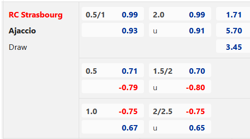 Strasbourg đang có đà tăng điểm rất đáng kể trên sàn giao dịch châu Á khi đã có kèo chấp lên đến 3/4. Đây là tỷ lệ khá cao nếu nhìn vào định mức bàn thắng chỉ dừng lại với kèo 2 hòa vào thời điểm trận đấu chuẩn bị diễn ra hiện nay.