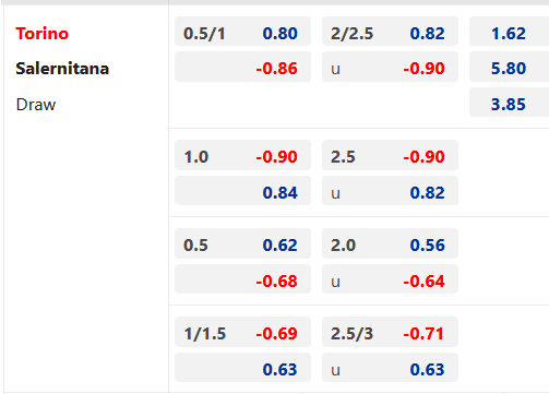 Chỉ số trên sàn giao dịch châu Á cho thấy Salernitana đang nhận được đánh giá tích cực hơn từ nhà cái với kèo được chấp 1 hòa đã có lợi điểm thấp hơn so với đầu phiên. Hơn nữa, Torino có dấu hiệu sa sút ở thời điểm hiện tại nên khó mang lại điểm tựa cho giới mộ điệu.