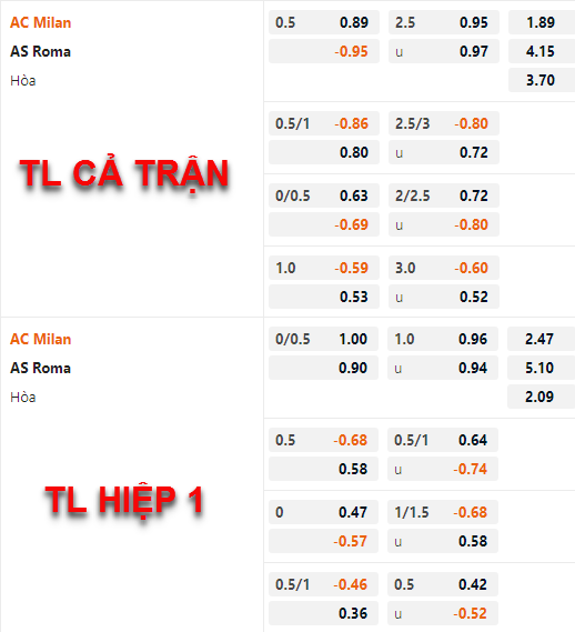 Nhưng diễn biến trên sàn giao dịch cho thấy giới đầu tư trên thị trường đang nghiêng nhiều về dự đoán trận đấu sẽ diễn ra chặt chẽ với ít bàn thắng. Điều này hợp lý bởi AS Roma hoàn toàn đủ khả năng thi đấu chặt chẽ khi bị đánh giá ở cửa dưới, nhưng lựa chọn AC Milan cũng là một lựa đáng cân nhắc bởi họ có thành tích quá xuất sắc trên sân nhà mùa giải này, trong khi các kết quả tốt của AS Roma thời gian gần đây phấn lớn đến từ những trận đấu giao hữu