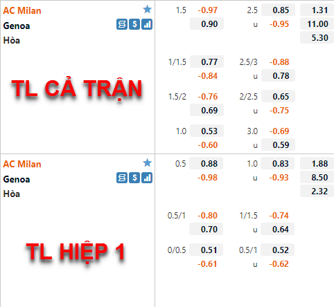 CHỐT KÈO: Genoa +1 1/2 cả trận