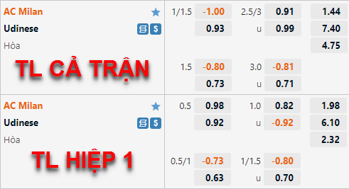 AEGoal chốt kèo bóng đá trực tiếp trận AC Milan vs Udinese diễn ra lúc 23h30 ngày 13/08 trong khuôn khổ giải VĐQG Italia sau khi dựa trên tính toán, chuyển động về kèo châu Á và đội hình ra sân của 2 đội.