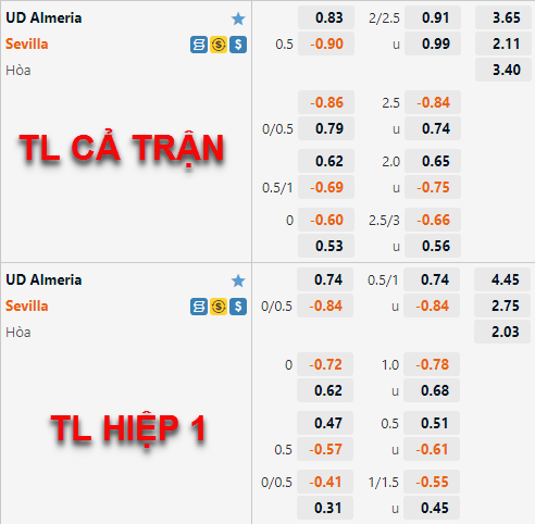 AEGoal chốt kèo bóng đá trực tiếp trận Almeria vs Sevilla diễn ra lúc 03h00 ngày 28/08 trong khuôn khổ giải VĐQG Tây Ban Nha sau khi dựa trên tính toán, chuyển động về kèo châu Á và đội hình ra sân của 2 đội.