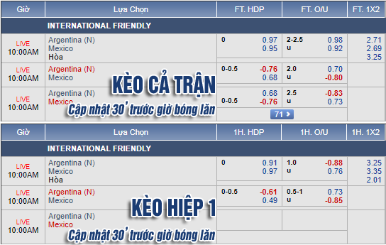 * Chốt kèo trận Argentina vs Mexico (09h00)