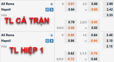 AEGoal chốt kèo bóng đá trực tiếp trận AS Roma vs Napoli diễn ra lúc 01h45 ngày 24/10 trong khuôn khổ giải VĐQG Italia sau khi dựa trên tính toán, chuyển động về kèo châu Á và đội hình ra sân của 2 đội.