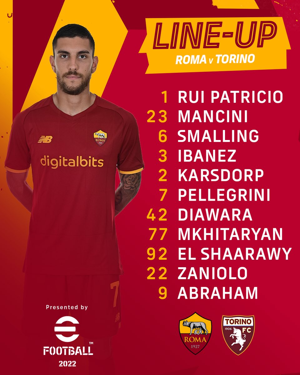 AS Roma: Leonardo Spinazzola, Matias Vina, Bryan Cristante, Gonzalo Villar, Riccardo Calafiori chấn thương. Jordan Veretout treo giò.