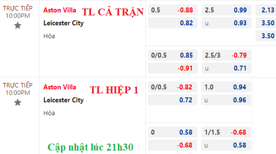 Chốt kèo trực tiếp trận Aston Villa vs Leicester (22h00):