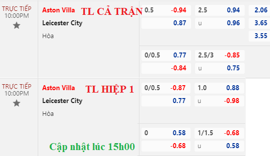 Trên sàn châu Á, Aston Villa mất giá khi kèo chấp hòa của họ chứng kiến điểm bỏ sâu. Trong bối cảnh tài xỉu vẫn là 2 1/2 thì dịch chuyển handicap như vậy là thiếu tích cực với Aston Villa.