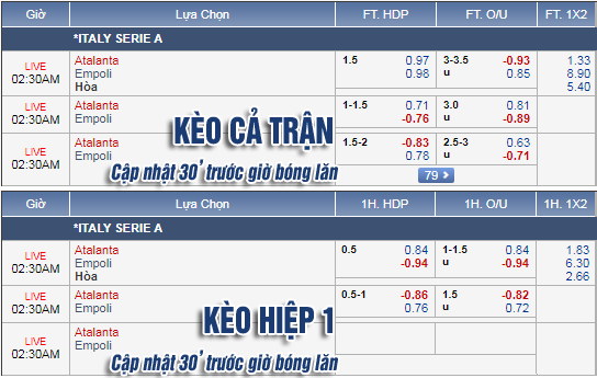 Cũng ở trận này, với lực lượng mạnh nhất cùng lợi thế sân nhà, việc Atalanta chiếm ưu thế trước đối thủ cũng là điều dễ hiểu. Trong khi đó bên phía Empoli gù tung ra đội hình có xu hướng phong ngự, nhưng rõ ràng với diễn biến từ sàn giao dịch châu Á, khả năng cởi mở của trận đấu vẫn được đánh giá cao hơn.