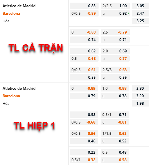 Tham khảo: Atletico Madrid +1/4 cả trận