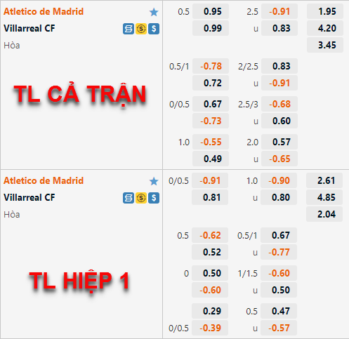 Có thể thấy nhưng thay đổi của nhà cái trên sàn giao dịch đang đem lại nhiều thuận lợi cho lựa chọn cửa dưới và xỉu. Điều này tương đối hợp lý khi Atletico Madrid chỉ có kết quả hoà trong 2 lần gần nhất tiếp đón Villarreal. Ngoài ra lựa chọn cửa tài cũng là một lựa chọn đáng lưu ý khi hai đội đang có phong độ ấn tượng và không có xu hướng thi đấu quá chặt chẽ