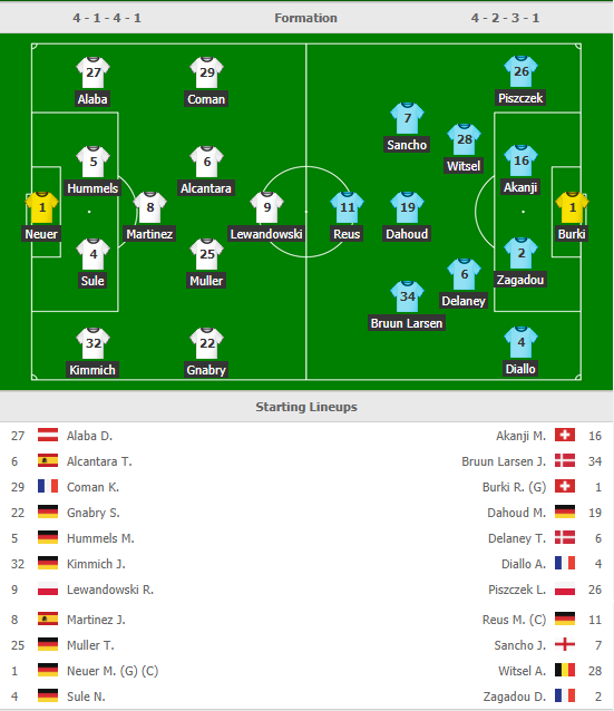 HLV Niko Kovac quyết định sử dụng những sao trẻ như Gnabry hay Coman để hỗ trợ cho Lewandowski chứ không phải Ribery. Trong khi bên phía đối diện, HLV Favre tỏ ra khá thận trọng khi sử dụng Dahoud chơi bên cạnh Delaney và Witsel ở khu vực giữa sân. Với ưu thế đang hơn Bayern 2 điểm, Dortmund có quyền hướng tới 1 kết quả hòa và đó là lý do Favre đặt sự chắc chắn lên hàng đầu. Vậy nên, xỉu là lựa chọn khả dĩ hơn!