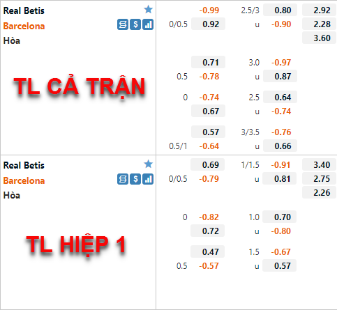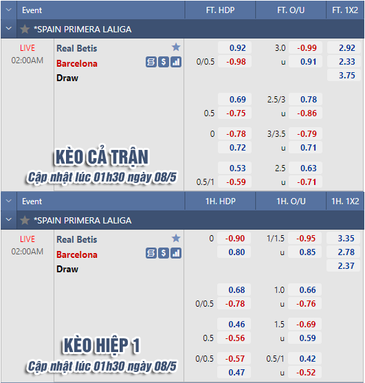 * Chốt kèo trận Betis vs Barcelona (02h00 ngày 08/05)