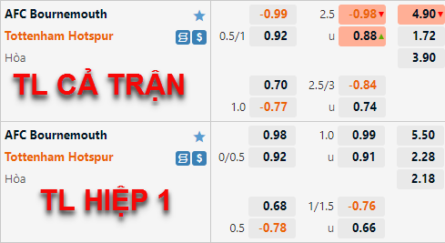 AEGoal chốt kèo bóng đá trực tiếp trận Bournemouth vs Tottenham diễn ra lúc 21h00 ngày 29/10/2022 trong khuôn khổ giải Ngoại hạng Anh sau khi dựa trên tính toán, chuyển động về kèo châu Á và đội hình ra sân của 2 đội.