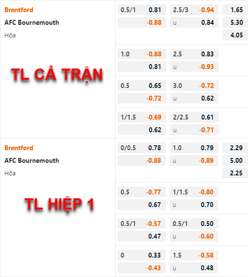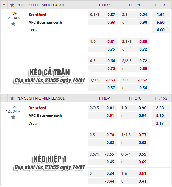 * Chốt kèo trận Brentford vs Bournemouth (00h30 ngày 15/1)
