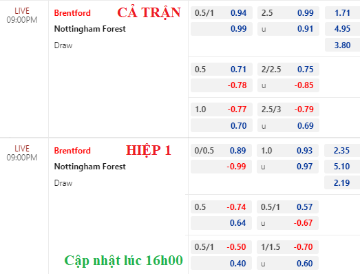 AEGoal chốt kèo bóng đá trực tiếp trận Brentford vs Nottingham diễn ra lúc 21h00 ngày 29/04/2023 trong khuôn khổ giải Ngoại hạng Anh sau khi dựa trên tính toán, chuyển động về kèo châu Á và đội hình ra sân của 2 đội.