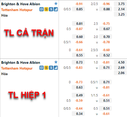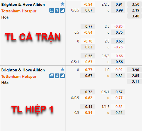AEGoal chốt kèo bóng đá trực tiếp trận Brighton vs Tottenham diễn ra lúc 02h30 ngày 17/03 trong khuôn khổ giải Ngoại hạng Anh sau khi dựa trên tính toán, chuyển động về kèo châu Á và đội hình ra sân của 2 đội.