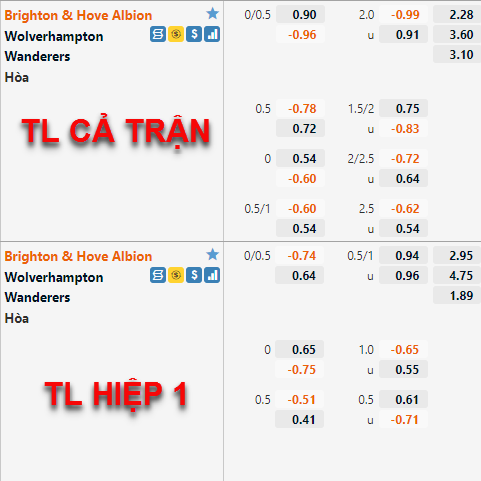 Biến động trên sàn giao dịch đem lại dấu hiệu tích cực cho lựa chọn cửa trên và tài trận này. Ở thời điểm hiện tại Brighton không còn duy trì được phong độ như thời điểm đấu mùa giải nhưng việc họ được nhà cái đánh giá cao với tỷ lệ chấp 1/4 đã giúp đội chủ nhà có được sự ủng hộ từ giới đầu tư, điều này cũng không quá vô lý bới Wolves mùa giải này thường chỉ chơi tốt khi phải đối đầu với những đối thủ vượt trội so với họ.