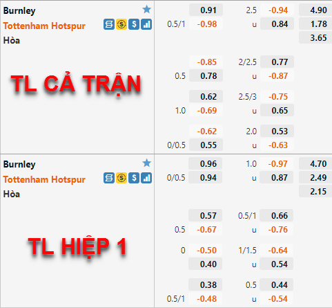Diễn biến trên thị trường châu Á cho thấy giới đầu tư cũng không mấy tin tưởng vào khả năng thắng kèo của Tottenham trận đấu này. Nhưng theo chúng tôi với tỷ lệ chấp vẫn duy trì ở mức 3/4 như hiện tại là một điểm cộng không nhỏ cho Tottenham bởi đây là mức chấp tương đối cao so với thời điểm tỷ lệ trận đấu bắt đầu được công khai. Mức chấp của Tottenham trận này cũng là một mức chấp cao của đội khách trong quá khứ đối đầu với Burnley