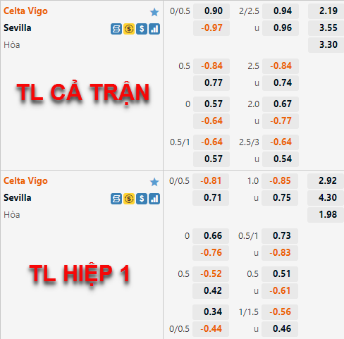 AEGoal chốt kèo bóng đá trực tiếp trận Celta Vigo vs Sevilla diễn ra lúc 01h15 ngày 31/12 trong khuôn khổ giải VĐQG Tây Ban Nha sau khi dựa trên tính toán, chuyển động về kèo châu Á và đội hình ra sân của 2 đội.