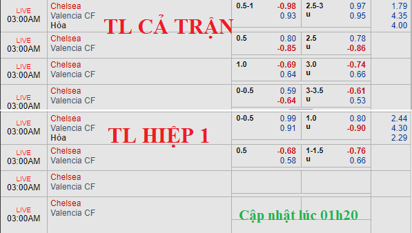 So với phiên khớp lệnh sáng ngày 17/09 thì Chelsea vẫn chấp 3/4 với điểm bỏ đôi chút trong khi mức tài xỉu 2 3/4 chứng kiến điểm ăn cho cửa tài từ mức bỏ về mốc cân bằng với cửa xỉu. Với đội hình và tỷ lệ như vậy thì nên tin vào các học trò của Lampard ở trận cầu này!