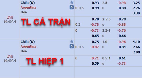 Những diễn biến của thị trường đem lại những dấu hiệu khả quan cho việc lựa chọn cửa trên trong trận đấu này. Argentina thời gian gần đây có lối chơi phụ thuộc quá nhiều và Messi, việc không có Messi trong trận đấu này sẽ là cơ hội tốt cho các cầu thủ khác thể hiện khả năng, rõ ràng với chất lượng đội hình vượt trội Argentina hoàn toàn có khả năng đánh bại Chile.