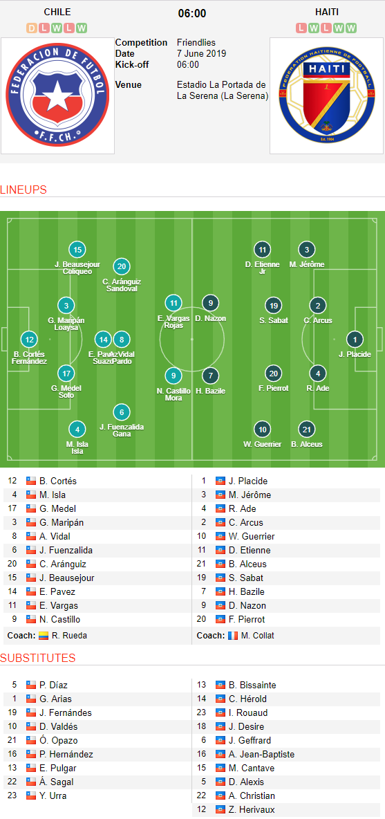 - Trận đấu: Chile vs Haiti (Giao hữu Quốc tế)