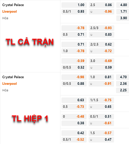 AEGoal chốt kèo bóng đá trực tiếp trận Crystal Palace vs Liverpool diễn ra lúc 02h45 ngày 26/02/2023 trong khuôn khổ giải Ngoại hạng Anh sau khi dựa trên tính toán, chuyển động về kèo châu Á và đội hình ra sân của 2 đội.