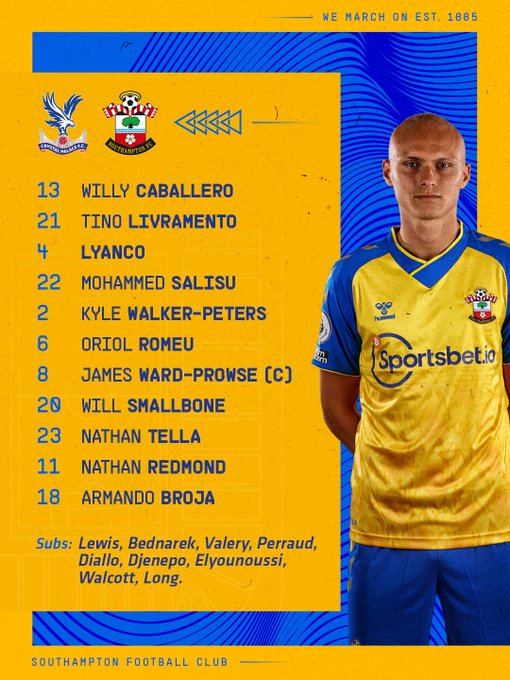 - Southampton: Forster, McCarthy, Stuart Armstrong, Che Adams chấn thương; Adam Armstrong, Broja (nghi ngờ).