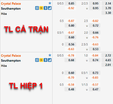 Tỷ lệ chính của trận đấu vẫn đang được nhà cái châu Á duy trì ở mức chấp 1/4 của Crystal Palace như thời điểm chúng tôi cập nhất trước đây nhưng điểm ăn của cửa trên đã được điều chỉnh tăng tương đối nhiều. Trong khi đó bên phía tỷ lệ tài xỉu lại có diễn biến trái chiều khi mốc 2 1/4 vẫn là mốc chính nhưng điểm ăn của cửa tài lại có xu hướng giảm điểm.