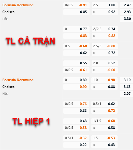 Những diễn biến trên sàn giao dịch châu Á thời gian vừa qua cho thấy đây là trận đấu tương đối khó đoán, mặc dù Chelsea đang gần như rơi vào khủng hoảng nhưng họ vẫn có lực lượng tốt hơn đối thủ. Trong khi đó Dortmund luôn có phong độ thất thường tại đấu trường châu lục đặc biệt là khi đối đầu với các đội bóng Anh. Có lẽ lựa chọn cửa xỉu sẽ là lựa chọn hợp lý nhất trận này khi Chelsea vẫn duy trì được sự ổn định ở hàng thủ trong khi Dortmund không vượt trội để áp đặt lối chơi tấn công.