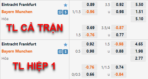 CHỐT KÈO: Eintracht Frankfurt +1 1/4 cả trận