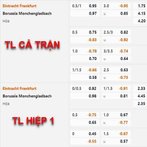 Chốt kèo: Eintracht Frankfurt (-3/4) cả trận