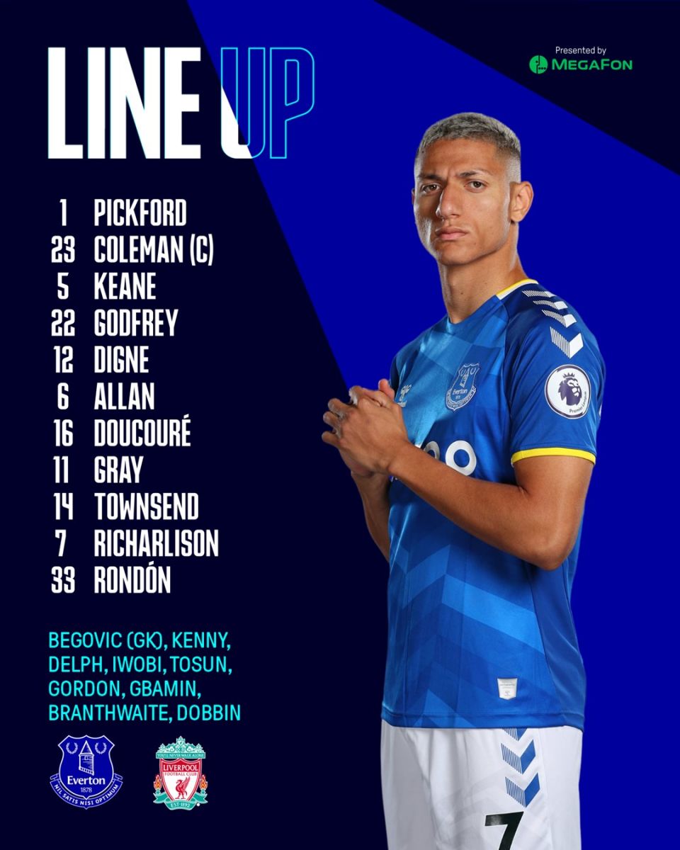 Eveton: Pickford; Coleman, Keane, Godfrey, Digne; Townsend, Allan, Doucoure, Iwobi; Gray; Richarlison