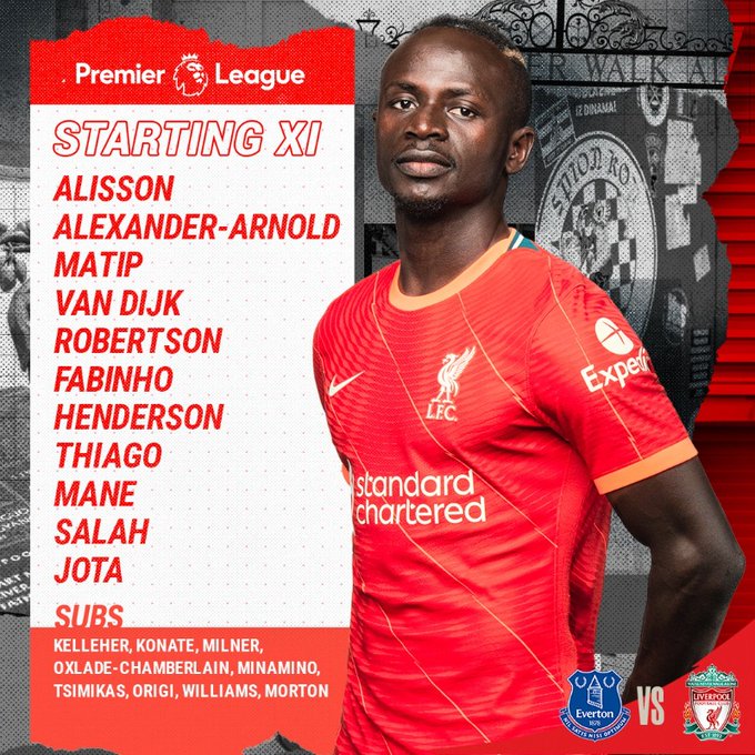 Liverpool: Alisson; Alexander-Arnold, Konate, Van Dijk, Robertson; Henderson, Fabinho, Thiago; Salah, Jota, Mane