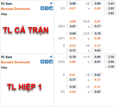 AEGoal chốt kèo bóng đá trực tiếp trận FC Koln vs Dortmund diễn ra lúc 01h30 ngày 21/3 trong khuôn khổ giải VĐQG Đức sau khi dựa trên tính toán, chuyển động về kèo châu Á và đội hình ra sân của 2 đội.