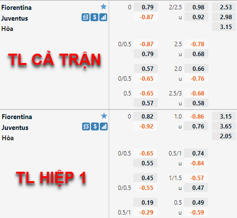 Tỷ lệ của trận đấu đã có những biến động đáng kể thời gian vừa qua. Tỷ lệ chấp 1/4 của Fiorentina đang được nhà cái đẩy lên làm mức tỷ lệ chấp chính của trận đấu thay cho mức 0:0 ở lần chúng tôi cập nhật trước. Trong khi đó, bên phía tỷ lệ tài xỉu mốc 2 1/4 vẫn được duy trì là mốc chính của trận đấu nhưng hiện tại điểm ăn của cửa xỉu đã được điều chỉnh giảm tương đối nhiều.