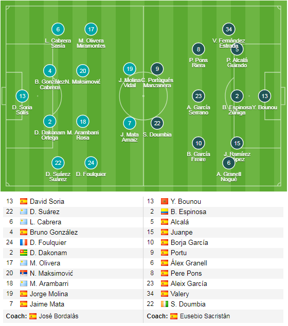 Trong đội hình ra sân của 2 đội, với việc vẫn có được đội hình gần như tốt nhất, trong đó có 2 cái tên quan trọng trên hàng công là Molina và Jaime Mata, Getafe vẫn đang cho thất ưu thế so với 1 Girona mất đi chân sút chủ lực Stuani, chưa kể đến sự vắng mặt của những Douglas Luiz hày Marc Muniesa cũng đang khiến Girona trở nên không đáng tin cậy. Vì thế, sự lựa chọ dành cho đội chủ sân Coliseum Alfonso Pérez vẫn đang cho thấy sự an toàn hơn ở trận đấu này.