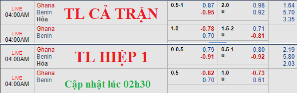 Chốt kèo trực tiếp trận Ghana vs Benin (03h00):
