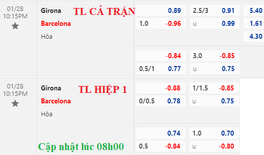 AEGoal chốt kèo bóng đá trực tiếp trận Girona vs Barcelona diễn ra lúc 22h15 ngày 28/01/2023 trong khuôn khổ giải VĐQG Tây Ban Nha sau khi dựa trên tính toán, chuyển động về kèo châu Á và đội hình ra sân của 2 đội.