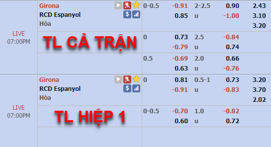 So với phiên giao dịch chiều nay, Girona đã mất giá đáng kể khi kèo chấp 1/4 của họ có mức ăn hạ từ -0.91 xuống chỉ còn -0.81 và mức kèo chính đã được điều chỉnh thành 0:0. Lợi thế sân nhà của Girona cũng không khiến họ được đánh giá cao hơn đối thủ đến từ Catalonia.
