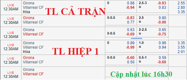 Mức kèo tài xỉu cũng đã được tăng từ 2 1/2 lên 2 3/4 cho thấy khả năng trận đấu "nổ tài" là hoàn toàn có cơ sở. Ở mức kèo 0:0 cả trận, chủ nhà Girona là những người đáng tin cậy hơn. Ít nhiều Villarreal sẽ bị phân tâm bởi trận tứ kết lượt về Europa League với Valencia sau đây mấy ngày.
