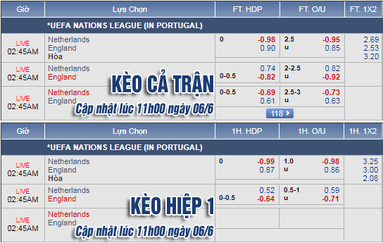 AEGoal.net chốt kèo trực tiếp trận Hà Lan vs Anh diễn ra lúc 01h45 ngày 07/6 sau khi dựa trên tính toán, chuyển động về kèo châu Á và đội hình ra sân của 2 đội.