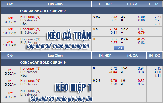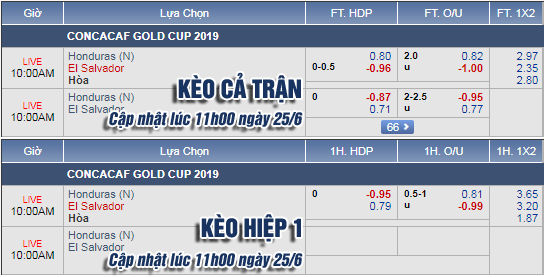 * Chốt kèo trận Honduras vs El Salvador (09h30)