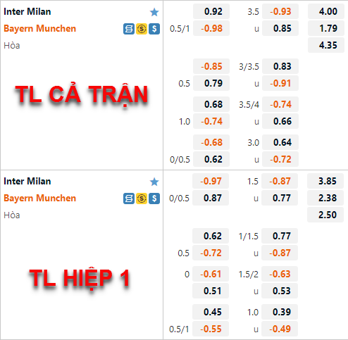 Những thay đổi trên sàn châu Á thời gian vừa qua cho thấy thị trường đang tin tưởng vào khả năng thắng của Bayern Munich cũng như khả năng trận đấu sẽ diễn ra sôi nổi với nhiều bàn thắng. Theo quan điểm của người viết thì lựa chọn cửa tài là lựa chọn đáng lưu ý hơn bởi Inter Milan nhiều khả năng vẫn sẽ thi đấu cởi mở trận này, còn ở tỷ lệ chấp 3/4 của Bayern Munich có lẽ chưa phải là mức chấp quá cao. Lựa chọn cửa trên chưa chắc đã là một lựa chọn an toàn